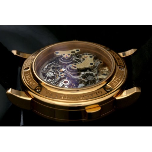 DOUBLE SPLIT是机械腕表史上首枚具有双追针飞返计时功能的计时秒表、其独有的追针积分盘装置、、腕表可测量比较长达 30 分钟的活动