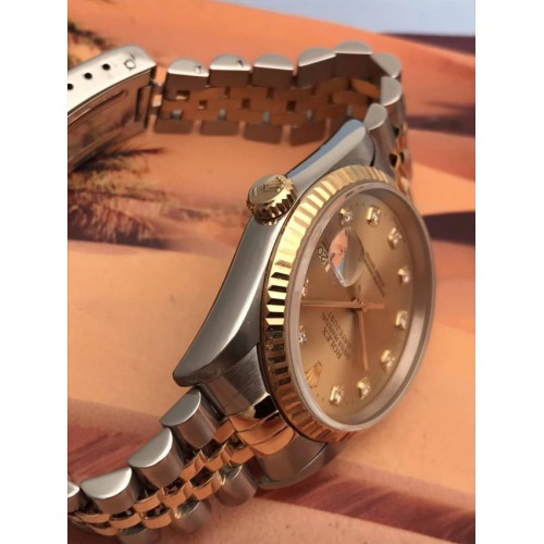 • 表壳材质:18k黄金/不锈钢,三角坑纹外圈