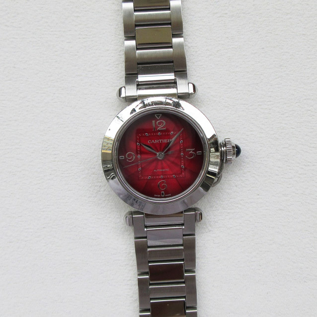 - 表盘材质:原装渐变酒红色立体雕刻表盘 原装指针